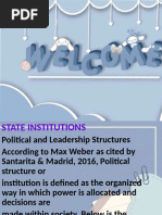 According to Max Weber as cited by Santarita & Madrid, 2016, Political structure or