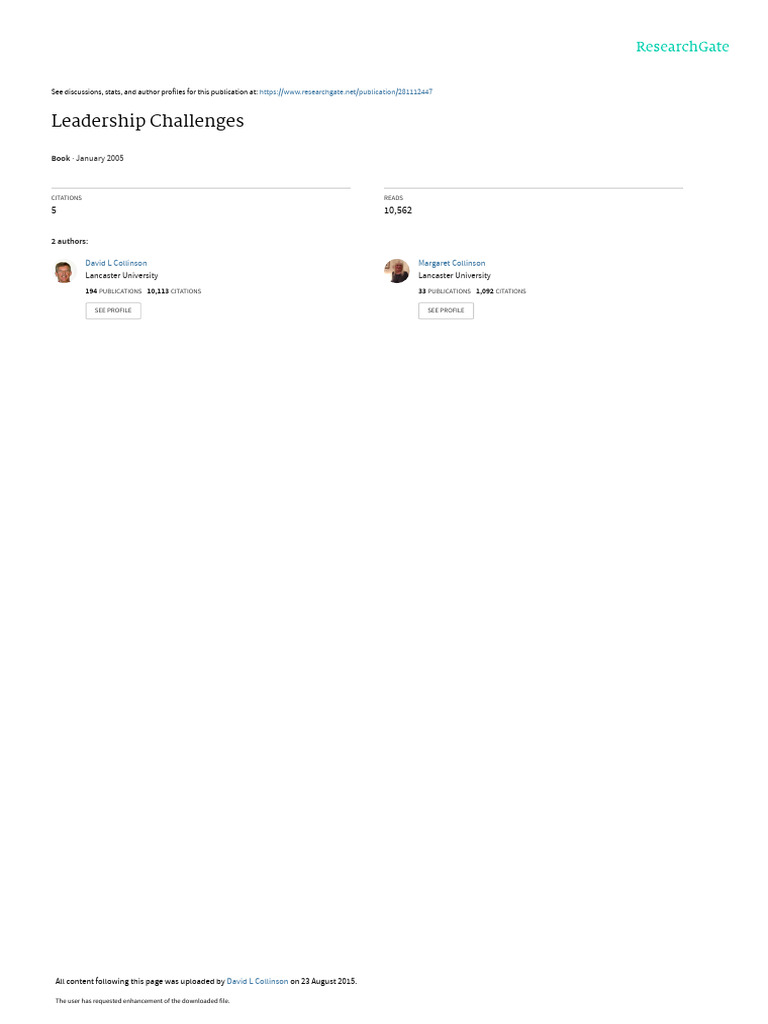 significant ‘leadership challenges’ and barriers to effective leader-led relations. Third,