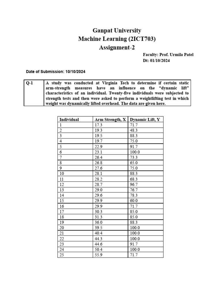 Q-1 A study was conducted at Virginia Tech to determine if certain static