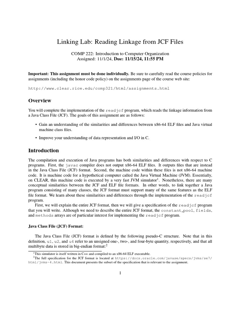 You will complete the implementation of the readjcf program, which reads the linkage information from