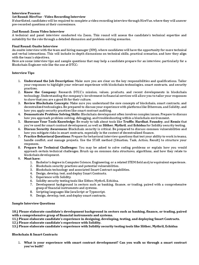 decentralized technologies. Be prepared to discuss your experience with platforms like Ethereum, and Solidity, and