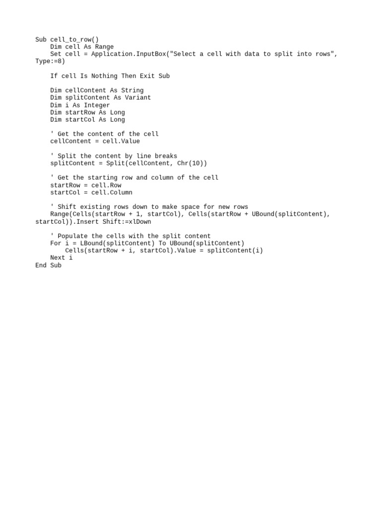 Set cell = Application.InputBox("Select a cell with data to split into rows",
