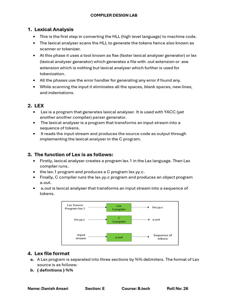 Name: Danish Ansari Section: E Course: B.tech Roll No: 26