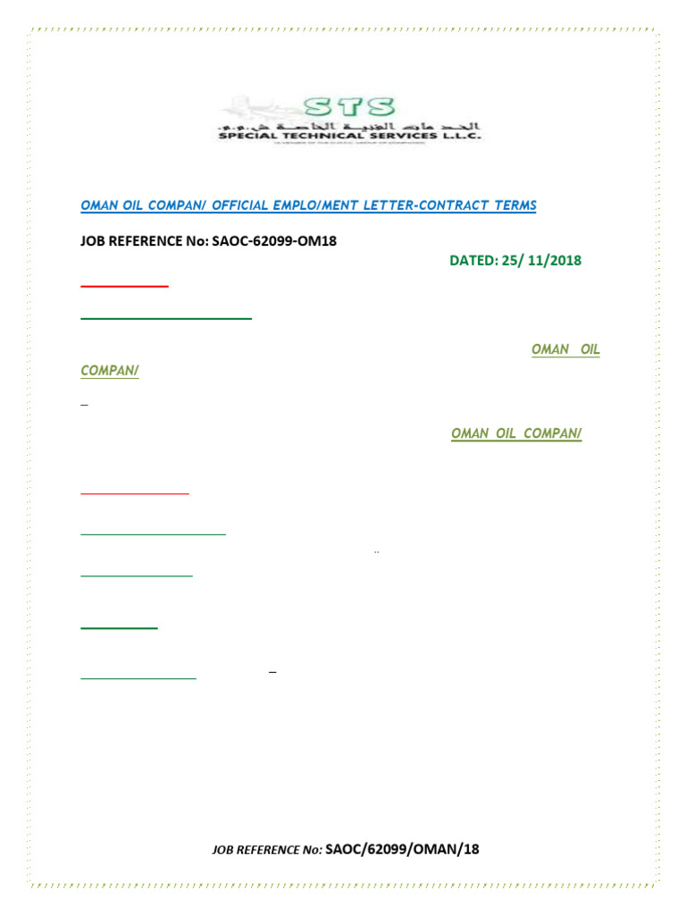 OMAN OIL COMPAN/ OFFICIAL EMPLO/MENT LETTER-CONTRACT TERMS