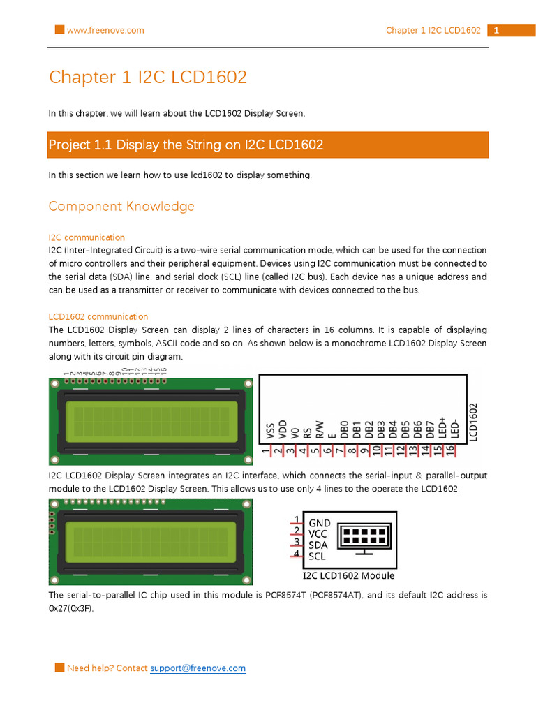 2 Chapter 1 I2C LCD1602 www.freenove.com █
