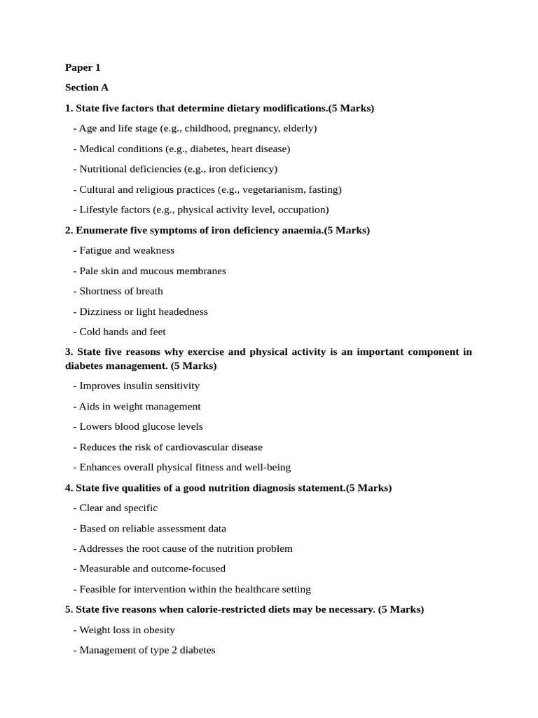 1. State five factors that determine dietary modifications.(5 Marks)