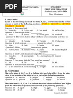 I. LISTENING A. Listen and decide if the statements from 1 to 4 are True or False (1 pt)