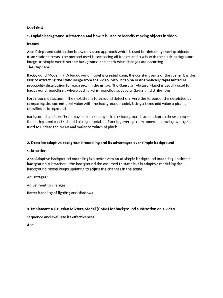 Ans: Adaptive background modelling is a better version of simple background modelling. In simple