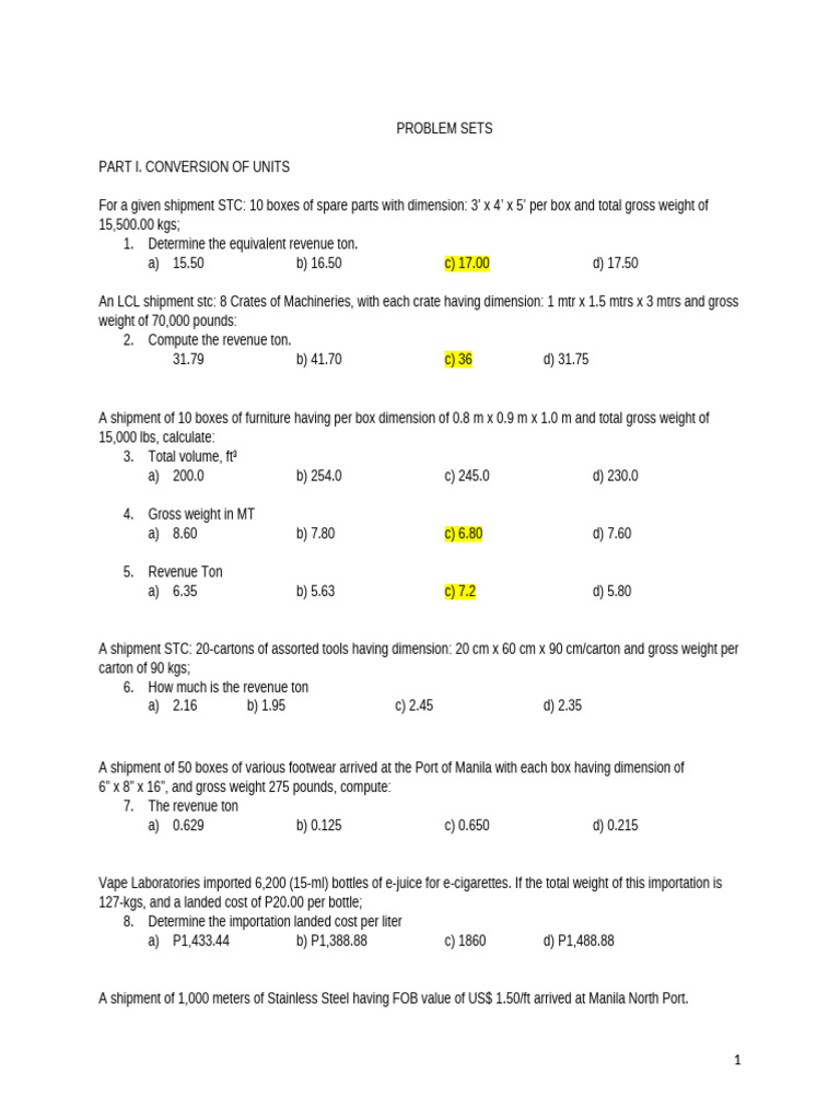 A shipment of 50 boxes of various footwear arrived at the Port of Manila with each box having dimension of
