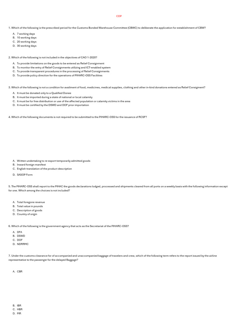 (CBW) or another port and serves as proof of delivery or receipt of the articles at its intended destination duly acknowledged on its face by the Collector of Customs or his duly
