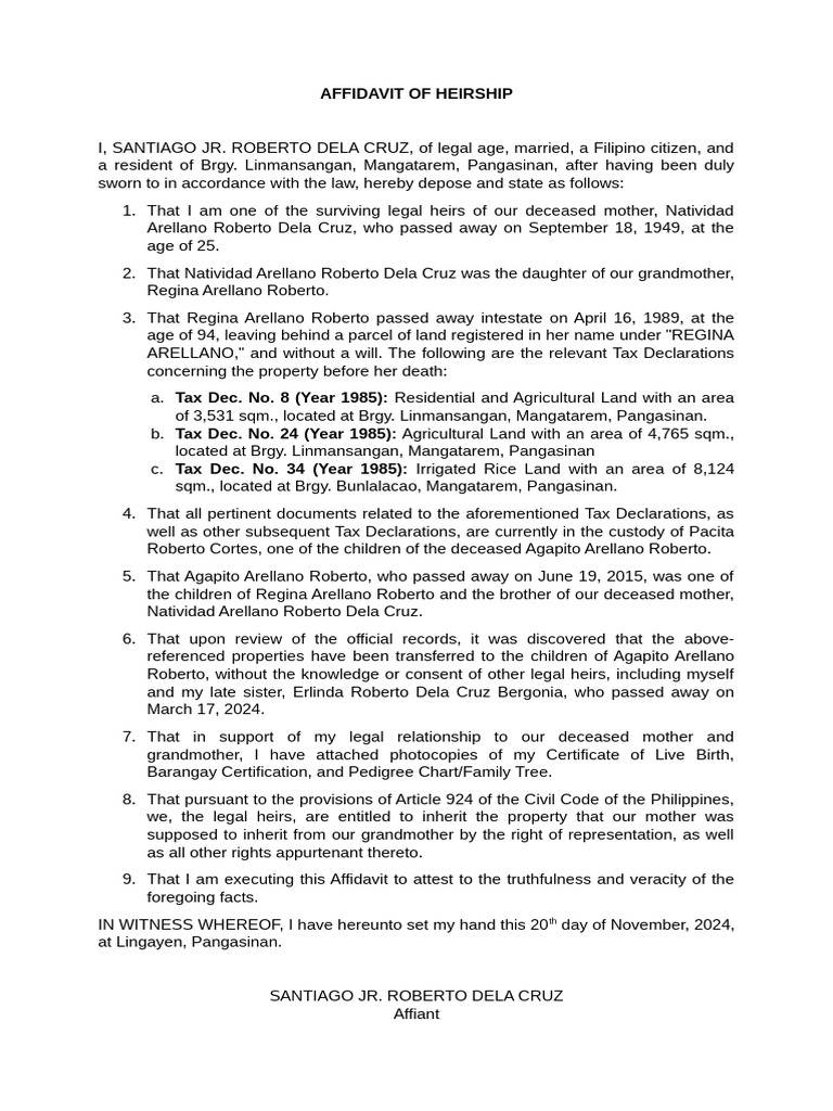 I, SANTIAGO JR. ROBERTO DELA CRUZ, of legal age, married, a Filipino citizen, and
