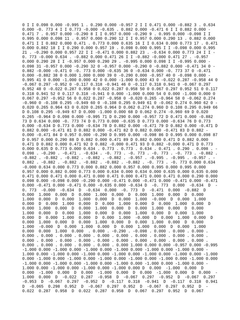 73 D 0.634 0.000 -0. 773 74 D 0.773 0.000 -0.635 D 0.773 0.000 -0.634 76 D 0.773