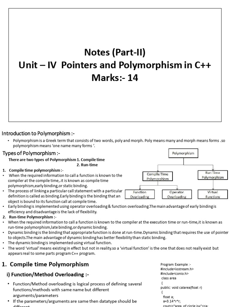 • Examples :- Overloaded function call, Overloaded • Example :- Virtual Function.