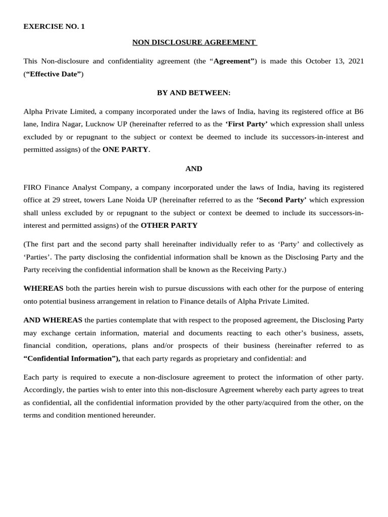 This Non-Disclosure Agreement along with the following document; ‘Alpha and FIRO’, dated 13 th October,