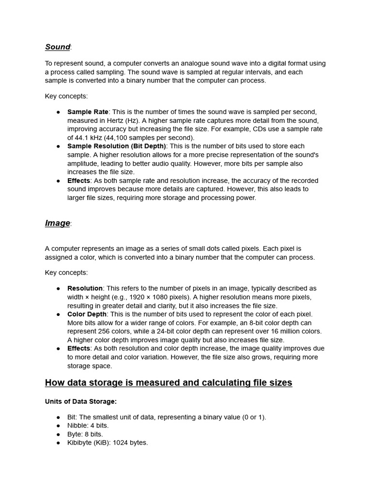 ● Bit: The smallest unit of data, representing a binary value (0 or 1).