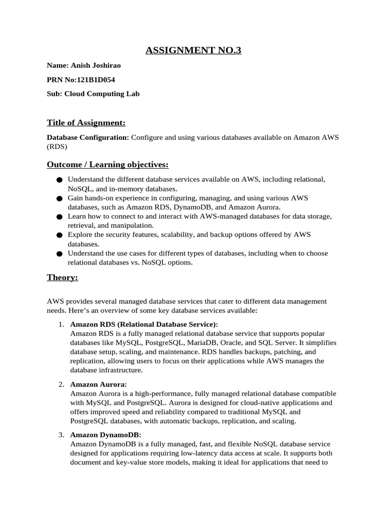 database services, with a primary focus on Amazon RDS. Through working with RDS, I