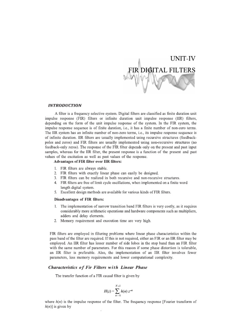 FIR filters are employed in filtering problems where linear phase characteristics within the