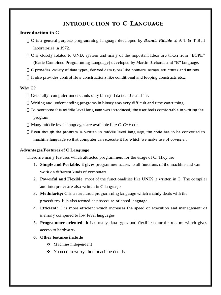 1. Simple and Portable: it gives programmer access to all functions of the machine and can