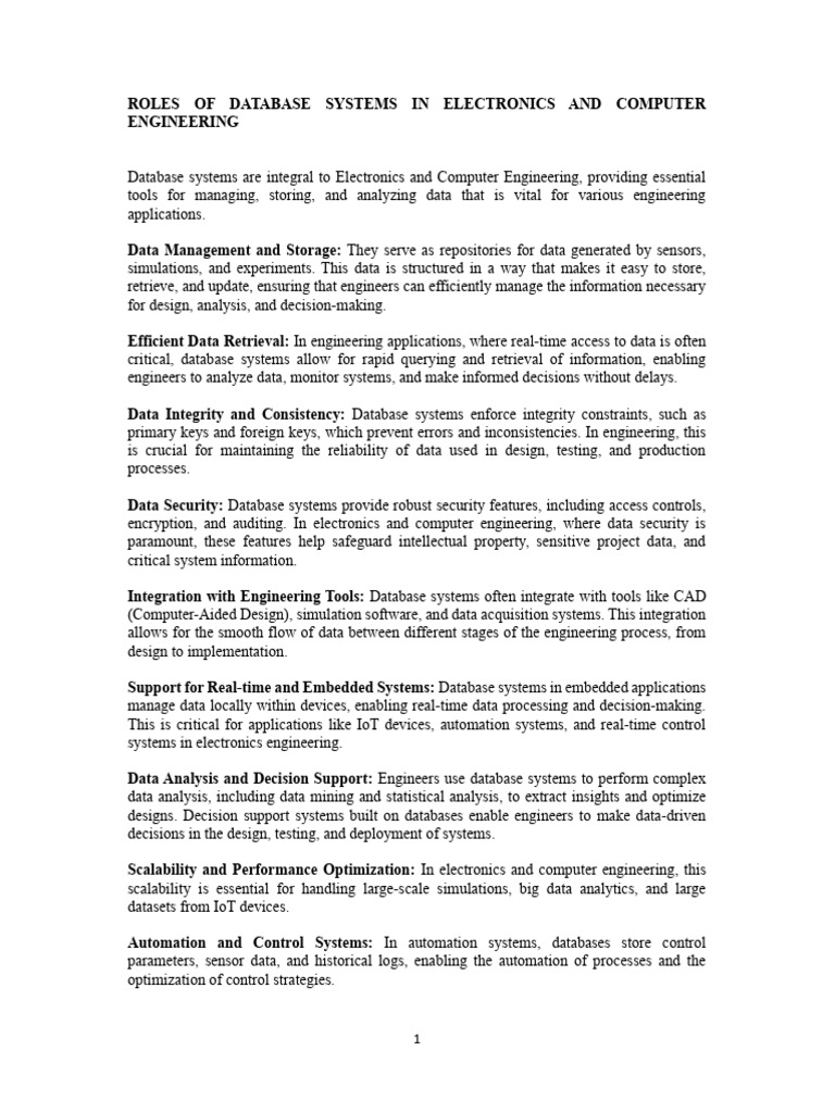 Database systems are integral to Electronics and Computer Engineering, providing essential