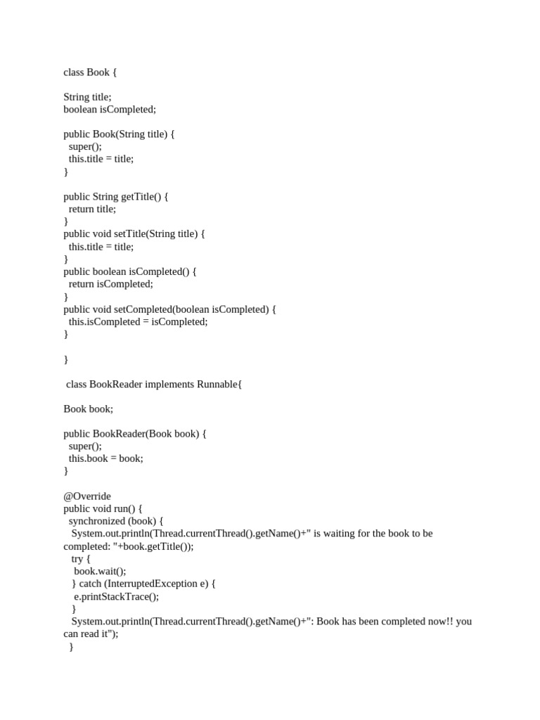 System.out.println(Thread.currentThread().getName()+": Book has been completed now!! you