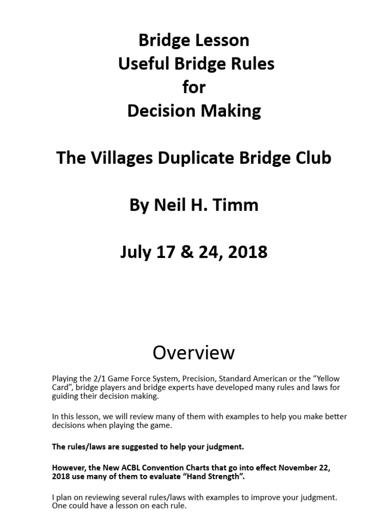 Bridge Rules Lesson