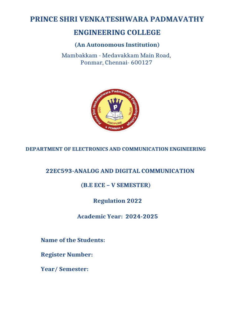 22EC593 Analog And Digital Communication laboratory during the year 2024 - 2025.