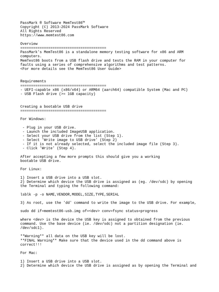 PassMark's MemTest86 is a standalone memory testing software for x86 and ARM