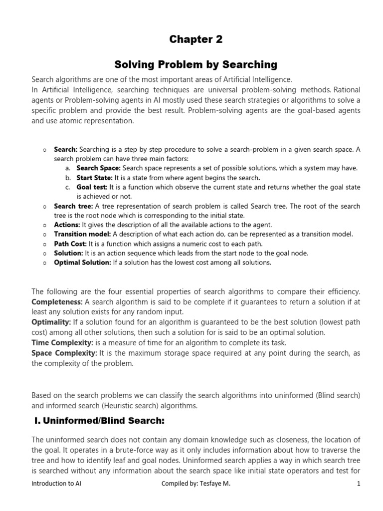 Introduction to AI Compiled by: Tesfaye M. 11
