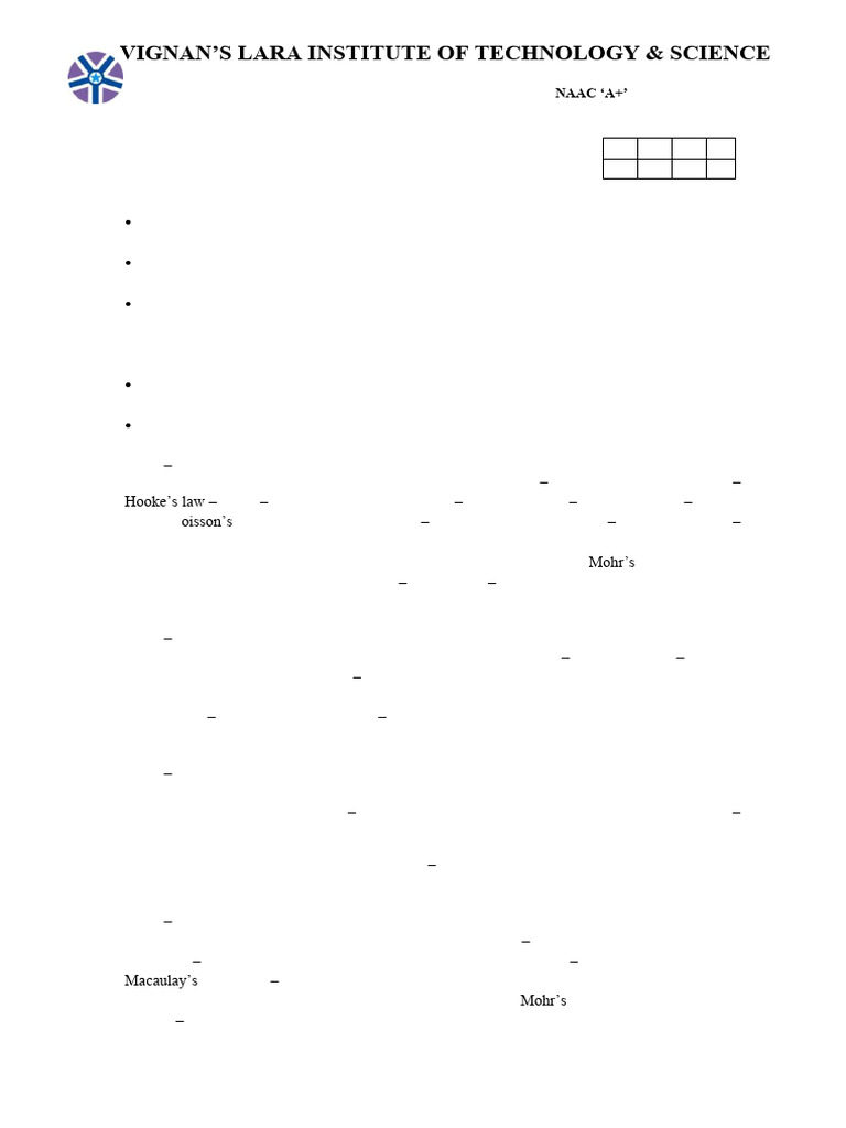 and biaxial stress conditions - Principal planes and principal stresses - Mohr’s circle - Relation