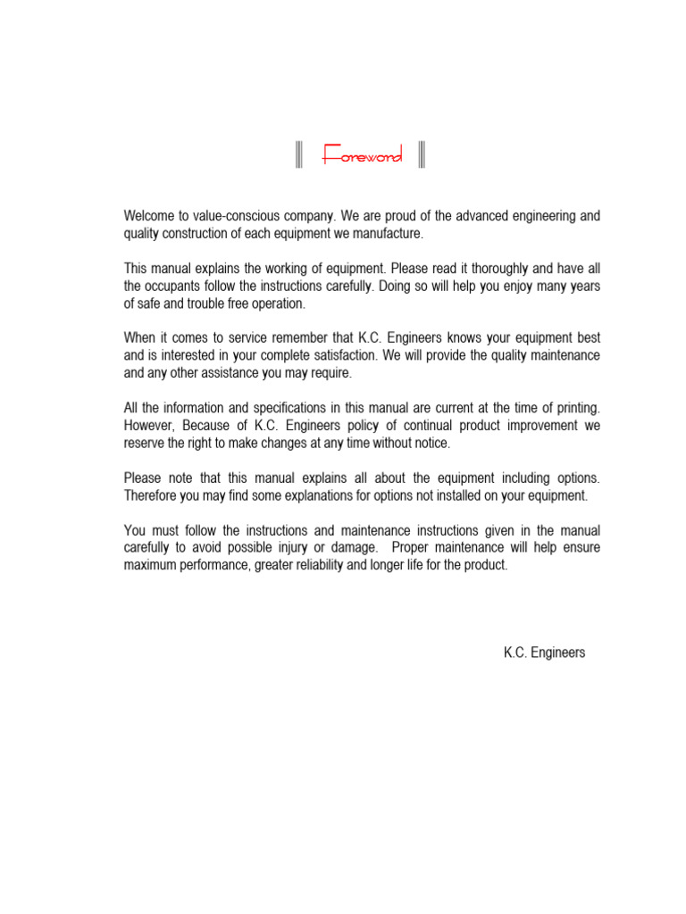 This manual explains the working of equipment. Please read it thoroughly and have all