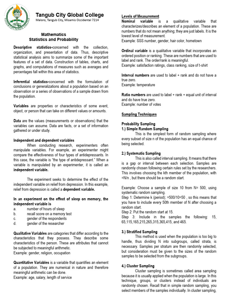of a population. They are numerical in nature and therefore 4.) Cluster Sampling