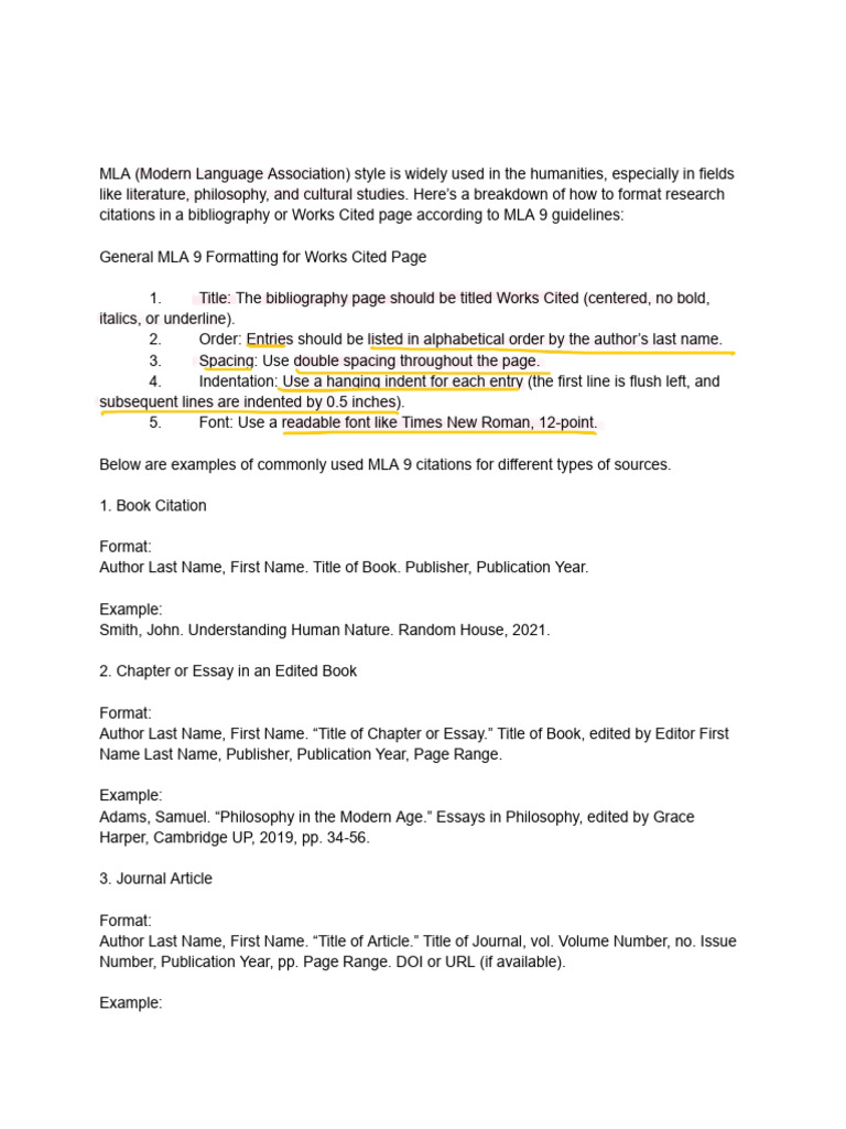2. Order: Entries should be listed in alphabetical order by the author’s last name.