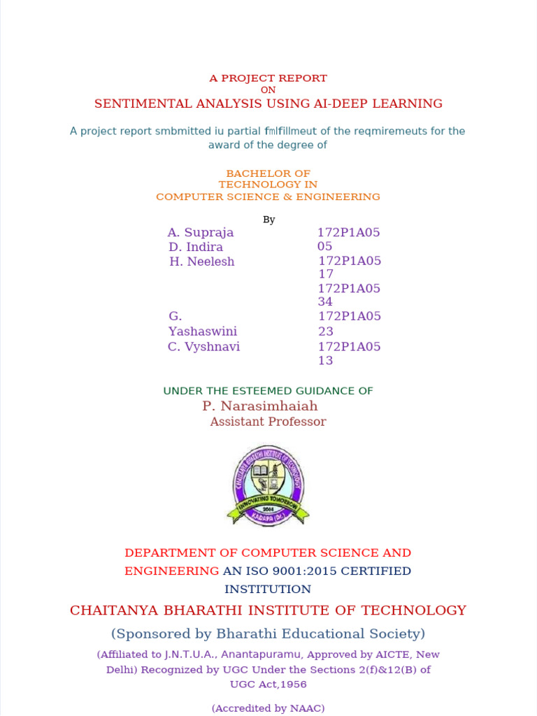 “SENTIMENTAL ANALYSIS USING AI-DEEP LEARNING” under the guidance of