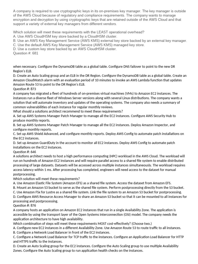 B. Use an AWS Key Management Service (AWS KMS) external key store backed by an external key manager.