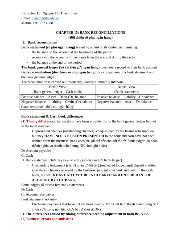 (1) Cheques drawn but not presented (Timing diff BL<BS: tiền trừ khỏi tk DN rồi)