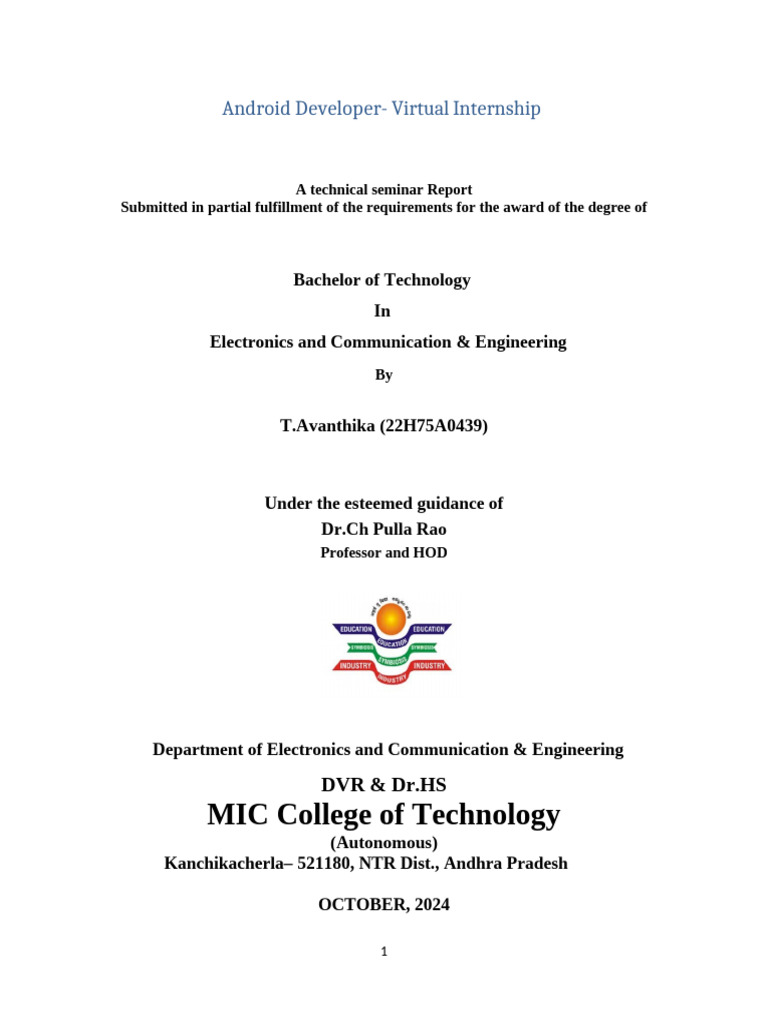 This is to certify that the seminar report entitled “Android Developer Virtual