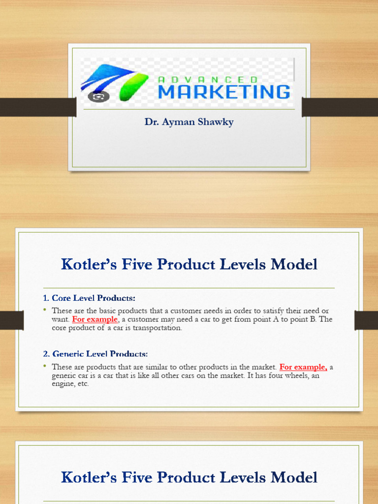 • Augmented Level Products: A car that is reliable, safe, has a comfortable ride and comes with