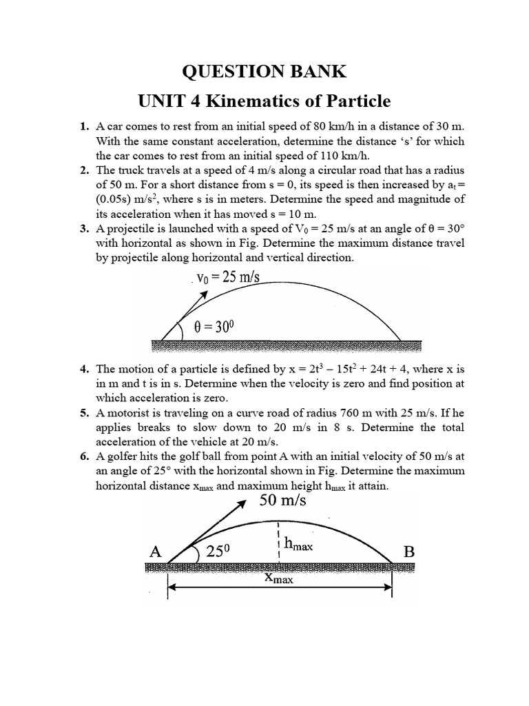 1. A car comes to rest from an initial speed of 80 km/h in a distance of 30 m.