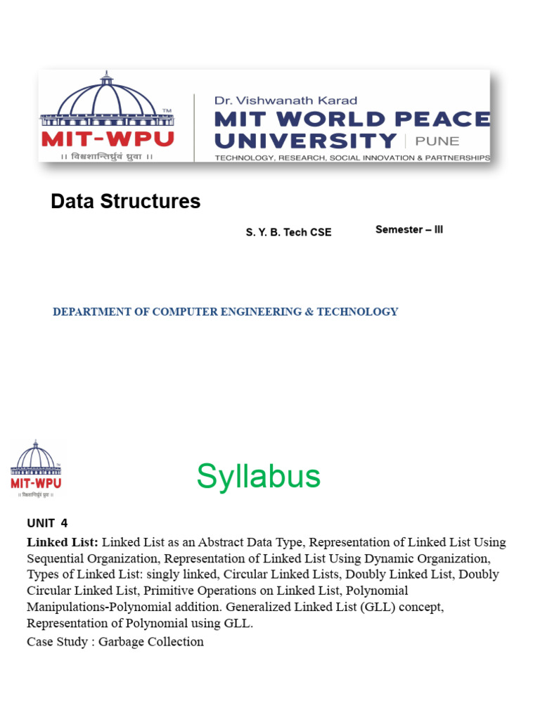 • Circular Linked List, Doubly Linked List , Generalized Linked List (GLL)