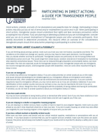 This information was compiled by law students of the National Lawyers Guild, using statutory law, case law, and the work of numerous legal and non-legal organizations across the country, notably, the National Lawyers Guild, Bay Area chapter. While the information here is up to date through August 2011, it is possible that substantive changes have been made to the laws since it was last updated. Please keep this in mind while using this resource. Source and reference information will be provided for most of the content in this manual to help you verify that the information is still good before relying on it. This manual was created for use by transgender community members and allies, by service providers who work with the transgender community, and by attorneys and legal workers who provide advocacy and legal services to members of the transgender community. For purposes of this manual, the word transgender is used as an umbrella term that includes transgender, gender variant, and intersex people who are at any point of self-identification or physical transition. Occasionally, the text will refer to individuals as he or she or his or her. This reference does not indicate that a statement applies exclusively to persons who identify as male or female, but instead is used for legibility and accessibility. The information in this manual does not constitute legal advice; instead, it is meant to serve as a resource to help understand the landscape of transgender law in a particular area, and to help connect readers with the current information needed to verify law or navigate a particular situation. Although we hope that this manual assists service providers and community members in locating information and resources, it is important to note that only licensed attorneys are authorized to give legal advice. If you have a question of law that is outside of the scope of information provided in this manual, you may wish to consult or refer your client to an attorney or, if you are a client, to contact one of the legal support agencies listed in the resource guide in the back. Many of the organizations listed in the resource guide provide referrals to attorneys who are familiar with transgender law and working with the transgender community. For questions, comments, corrections and suggestions, please contact carlos@nlgsf.org USING THIS MANUAL This manual was created to be a first-stop reference for lawyers, service providers, and community members who need legal information about a transgender-specific issue or question of law. For ease of use, the content has been divided by common problems or needs. Case law, statutes, print and web resources, and other service organizations can be found embedded throughout the manual, referenced in the footnotes, and listed in the directory at the back of this manual. This resource was created by and for people in the San Francisco/Bay Area, and therefore much of the information is specific to California and San Francisco/Bay Area resources and law. We hope that this manual will be a helpful resource to readers outside of California because it includes information that is nationally relevant. However,