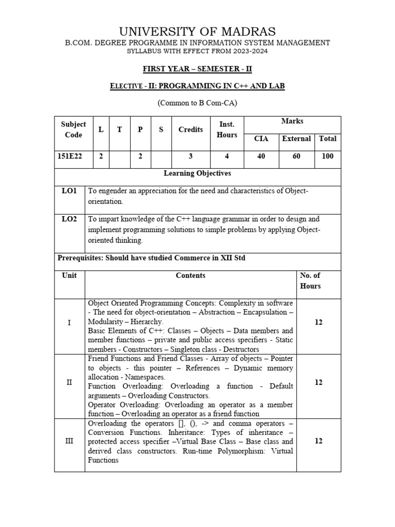 ELECTIVE - II: PROGRAMMING IN C++ AND LAB
