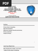 Understanding the risks and problems is a first step toward protecting privacy. For computer