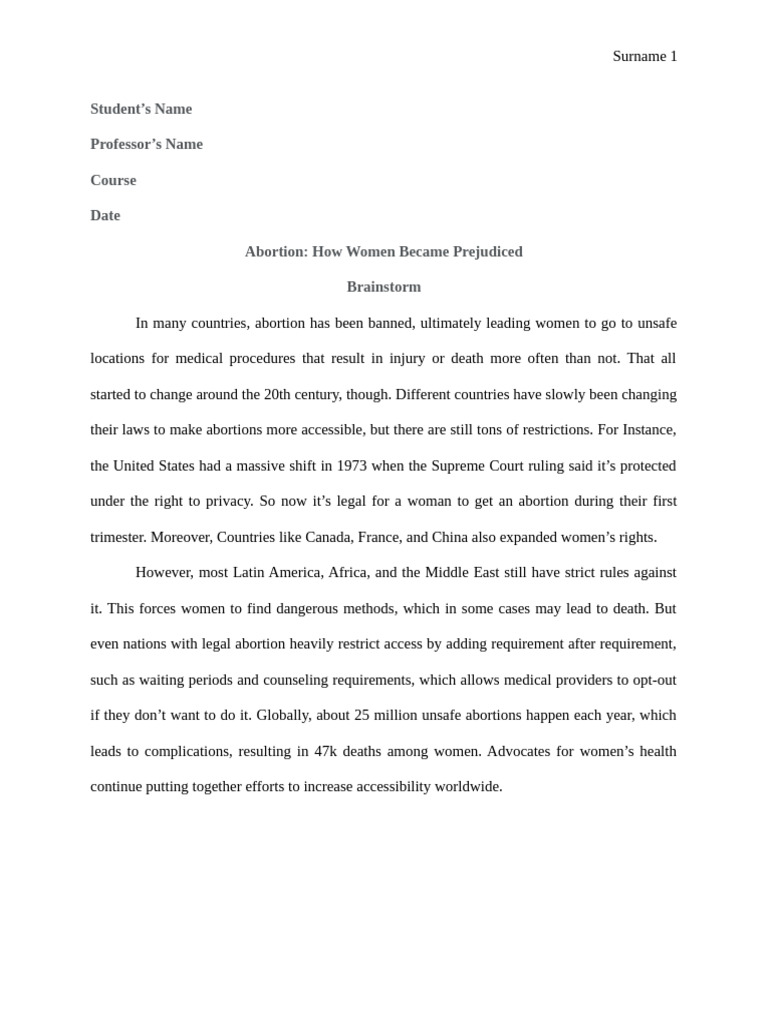 Thesis: Systemic prejudice against women seeking abortions has been enabled through