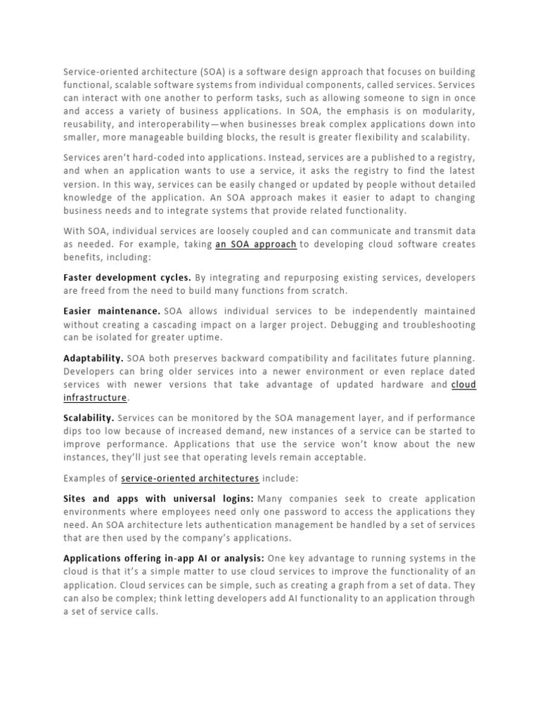 as needed. For example, taking an SOA approach to developing cloud software creates