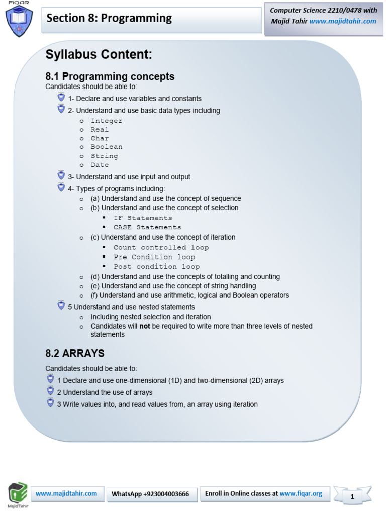 Syllabus Content: