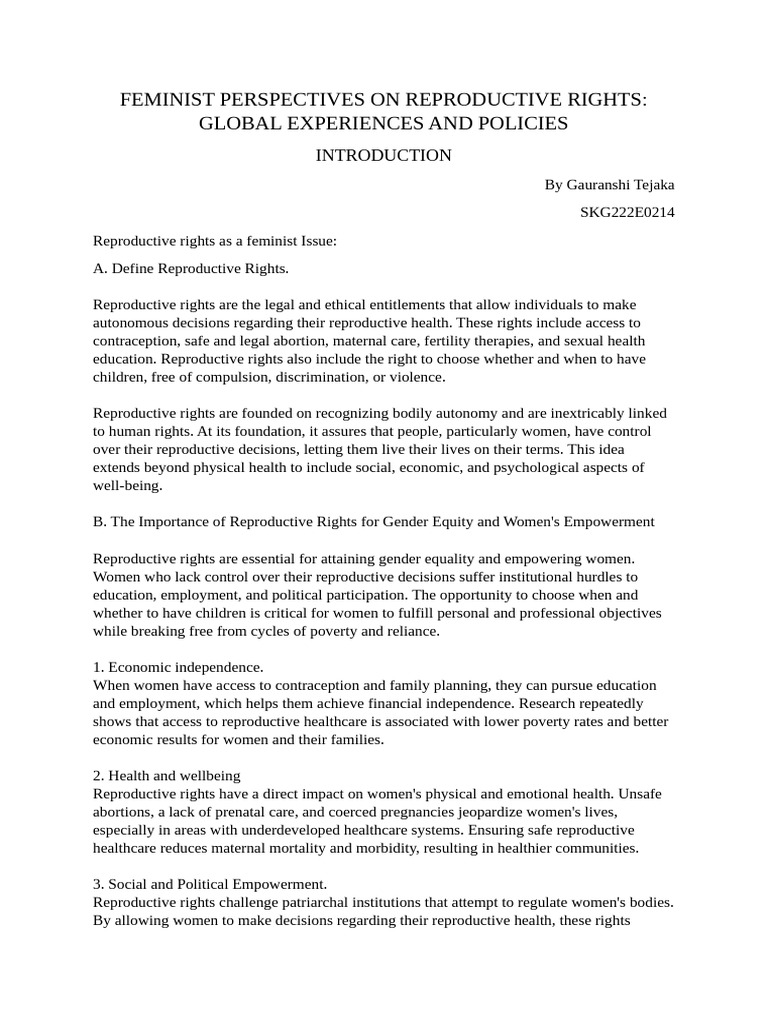 FEMINIST PERSPECTIVES ON REPRODUCTIVE RIGHTS: