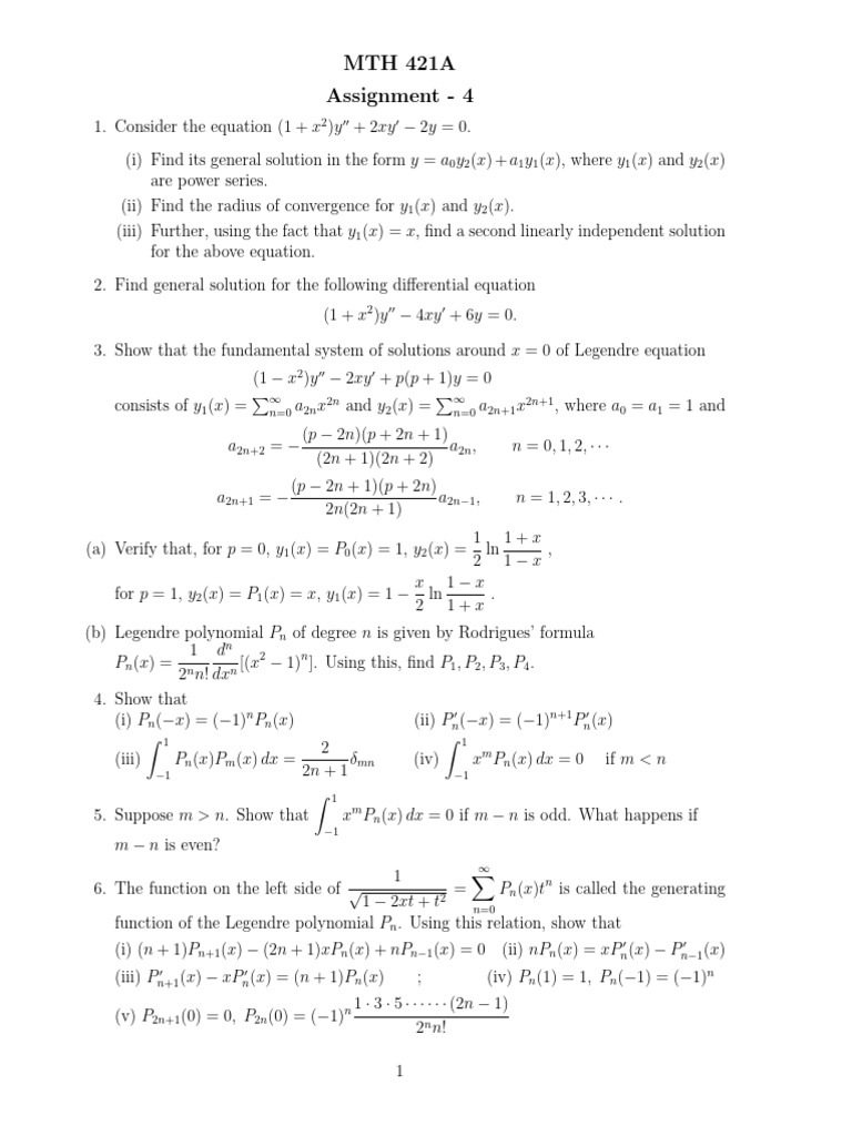 1. Consider the equation (1 + x2 )y ′′ + 2xy ′ − 2y = 0.