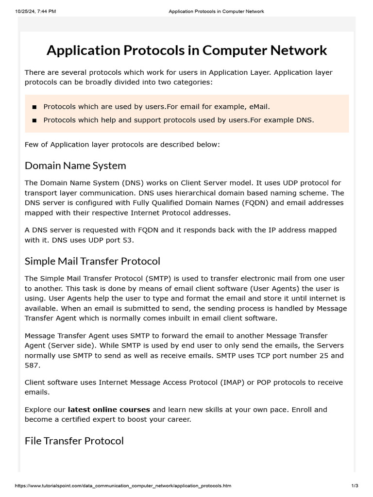10/25/24, 7:44 PM Application Protocols in Computer Network