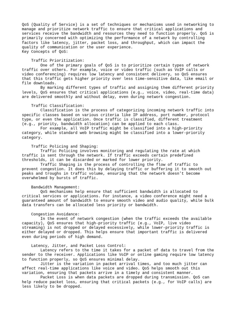 capacity), QoS ensures that high-priority traffic (e.g., VoIP, live video