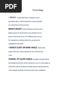 on the bench(crest) and the lowest • The physical characteristics of the deposits;